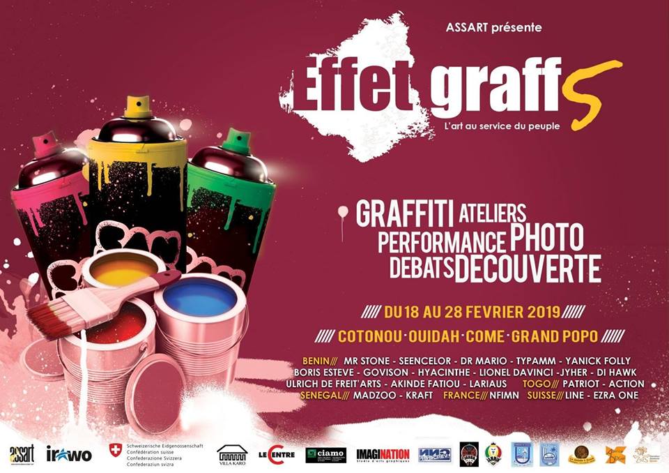 Pour sa cinquième édition, Effet Graff a pour thème: « Peindre l’histoire de nos héros modernes » Une occasion idéale pour célébrer et parler de ces personnes et figures qui peuvent être des modèles pour la jeunesse; cette jeunesse qui il faut le remarquer, a un problème d’identité et de modèles à qui se référer. Nous allons essayer de répondre à cette problématique à notre manière à travers des ateliers, des débats du 18 au 28 Février 2019 à Cotonou, Ouidah, Comè et Grand-Popo.